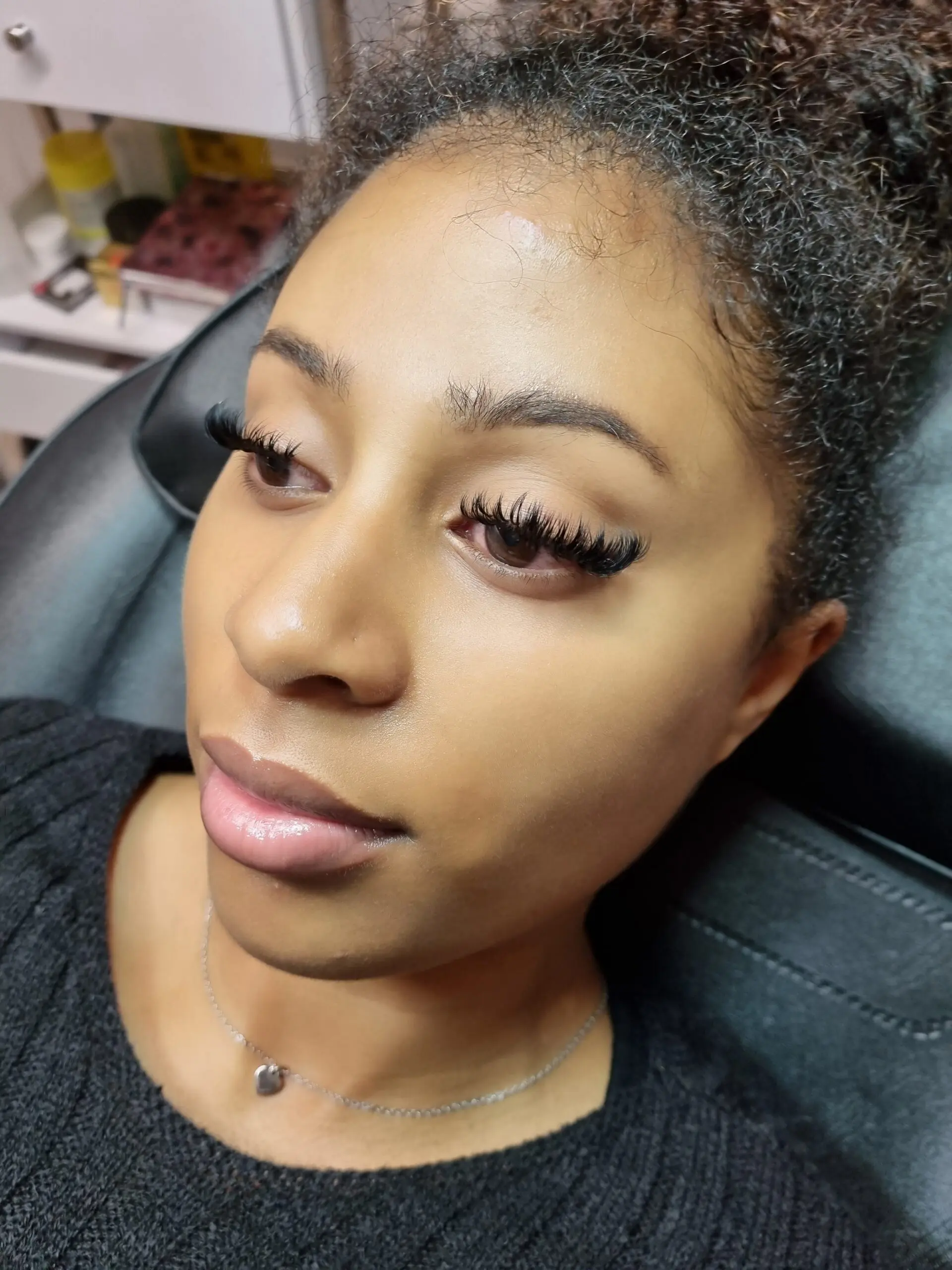 With this technique synthetic fibers are attached to your natural eyelashes, which can make the eyes appear wider and more lifted.